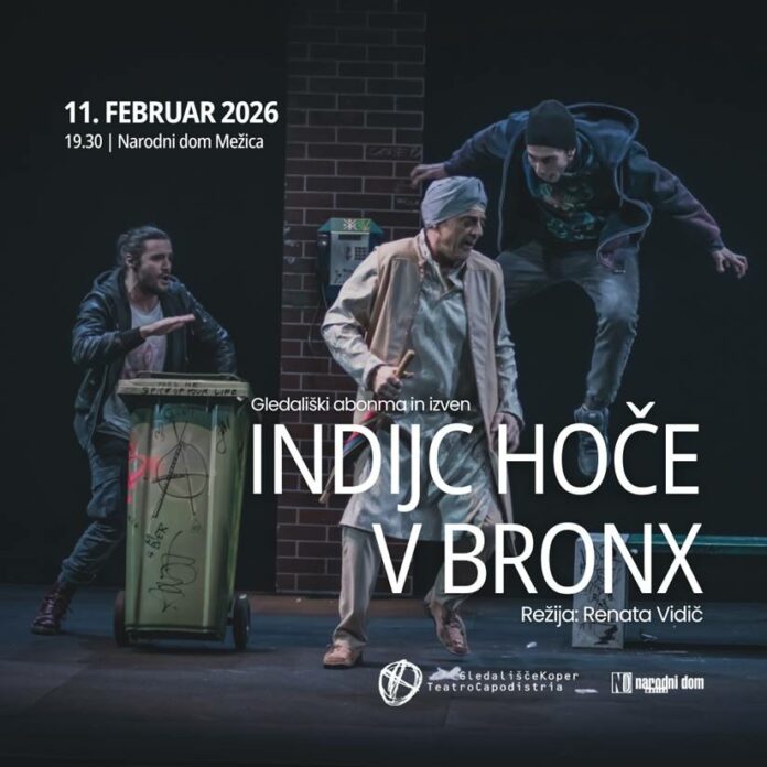 Vabimo vas na gledališko predstavo Indijc hoče v Bronx v izvedbi Gledališča Koper, pretresljivo dramsko igro, ki skozi napeto nočno srečanje na newyorški avtobusni postaji razgalja nasilje, predsodke in brezbrižnost sodobne družbe.