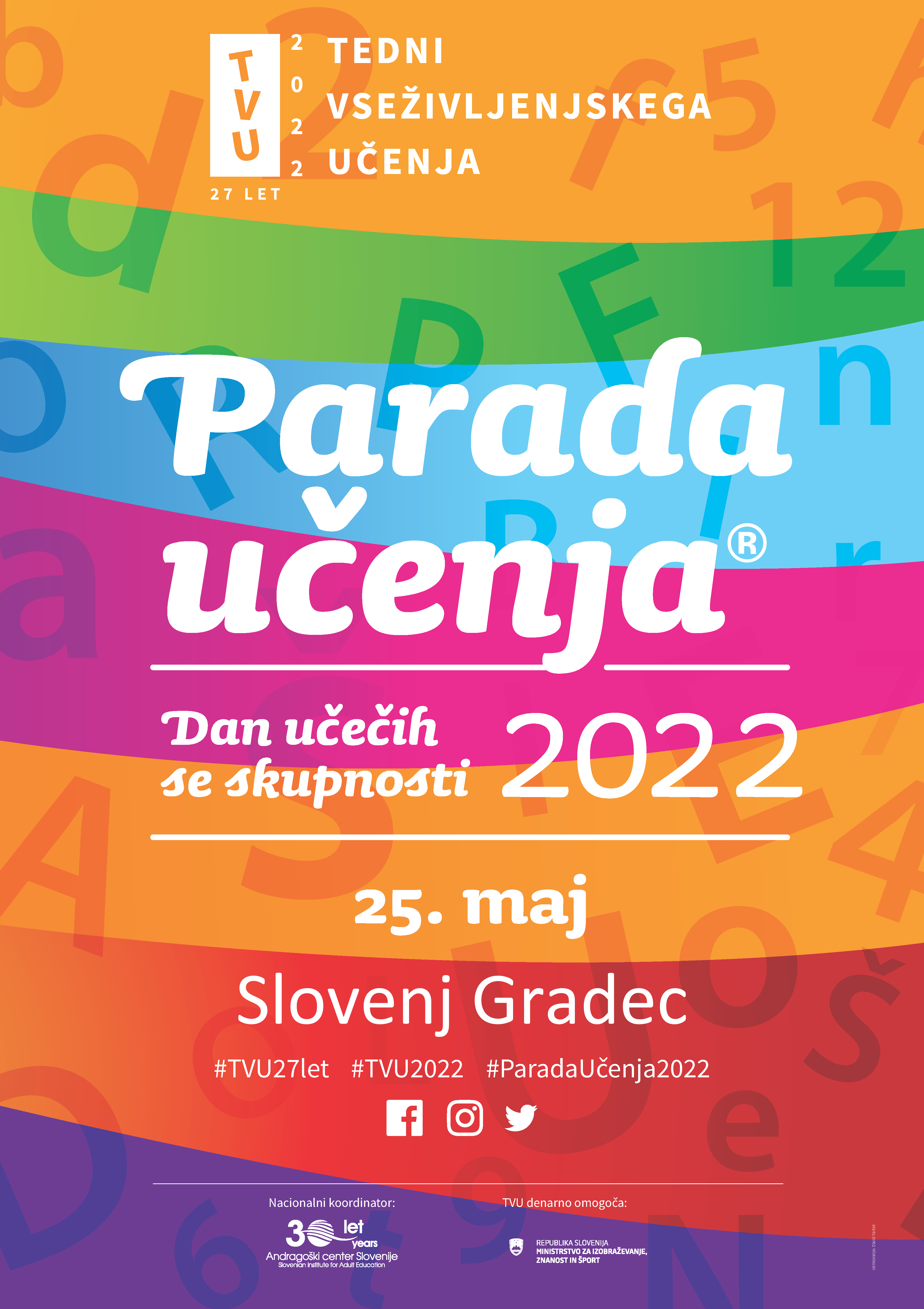 V Slovenj Gradcu bo 25. maja spet Parada učenja, ki bo letos potekala skozi ves dan. Dopoldan vabljeni v atrij dvorca Rotenturn, kjer boste ob ogledu stojnic lahko navijali za najhitrejše sestavljalce Rubikove kocke. Popoldan, na festivalu učenja za družine, vas bo med učenjem skozi gibanje zabaval Challe Salle. Zvečer pa lepo vabljeni v Kulturni dom Slovenj Gradec na predavanje Mateja Praprotnika: Radio, čudoviti svet pripovedovanja. Podrobnejši program najdete TUKAJ.