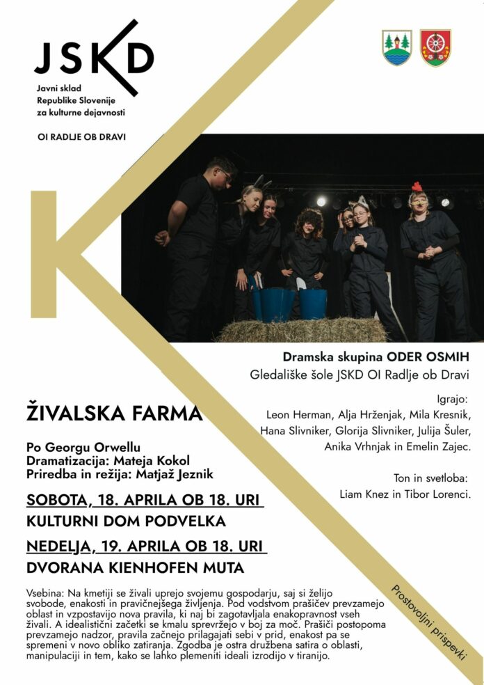 Vabijo vas na predstavo Živalska farma v izvedbi Odra osmih gledališke šole JSKD Radlje ob Dravi: