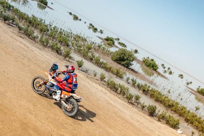 Par kilometrov pred ciljem je bil še en navigacijsko zahteven moment – past, ki nam jo je nastavil organizator. Prav tukaj je Ricky Brabec izgubil letošnji Dakar. Navigacijska napaka prav na tej točki ga je stala dirke, in tudi sam sem tu ubral napačno pot, a kaj kmalu ugotovil, da moram obrniti in iti nazaj na pravo smer, nadaljevati po cesti in s polnim plinom do cilja. Noro, noro, noro!
